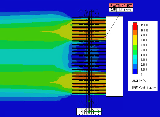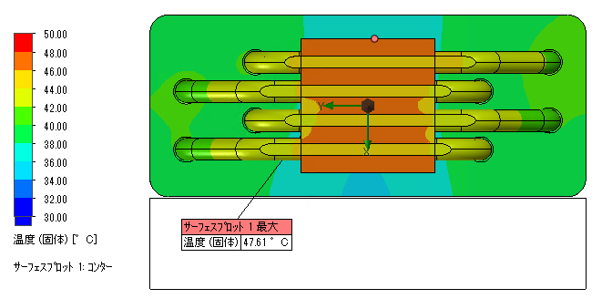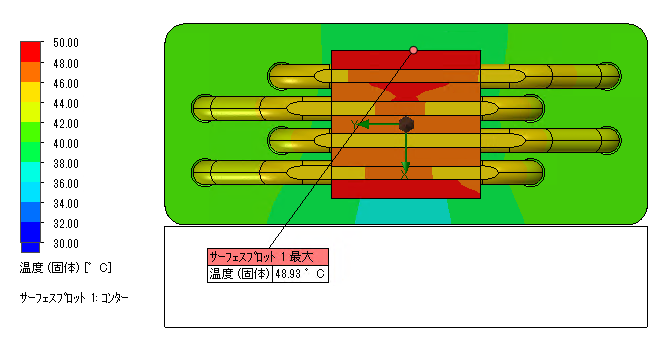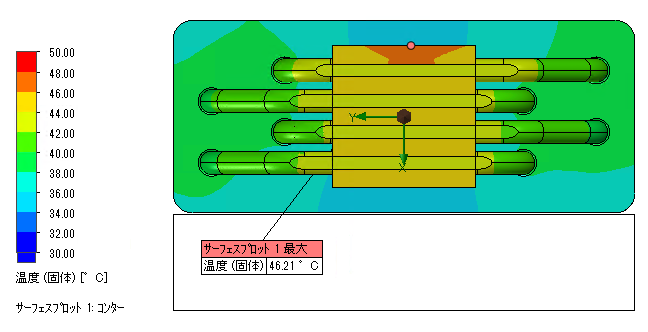 同じヒートシンクにて、空冷条件(ファン)を変えたときの熱源温度を確認します。
