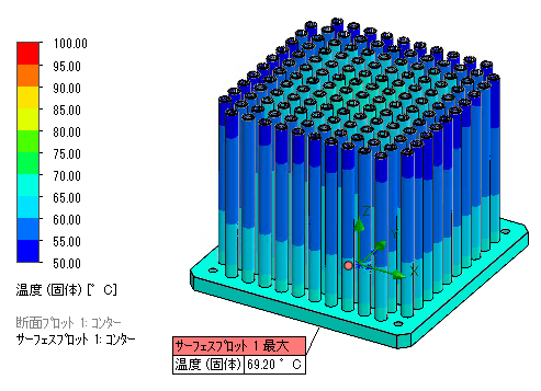 熱解析を利用し、冷却性能と体積の関係を把握することで、効率の良い設計が可能となります。