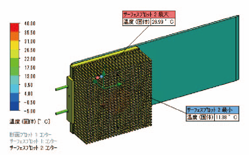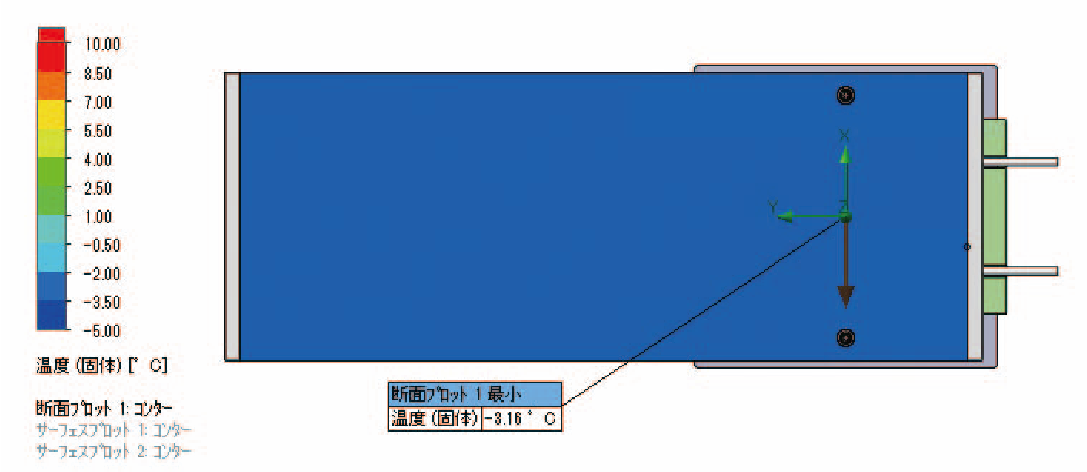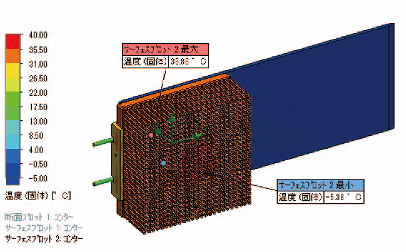 ■結果:アルミヒートパイプ付きペルチェの動作シミュレーション事例